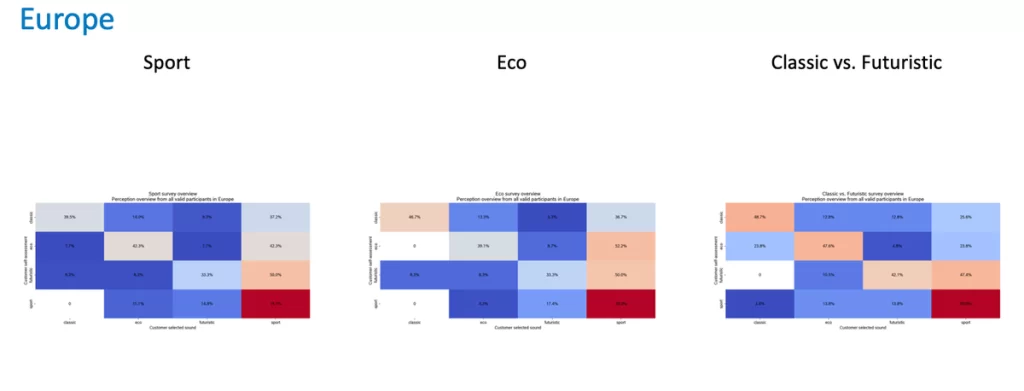 - The findings revealed significant regional variations in sound preferences, which have direct implications for designing electric vehicle sounds that cater to diverse markets.
